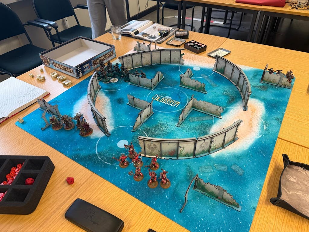 This complete mat and terrain set will get you playing the popular King of the Colosseum format as seen on Play On Tabletop. The 3'x3' gaming mat comes with pre-marked objectives and terrain layout making it fast to set up and get to playing.